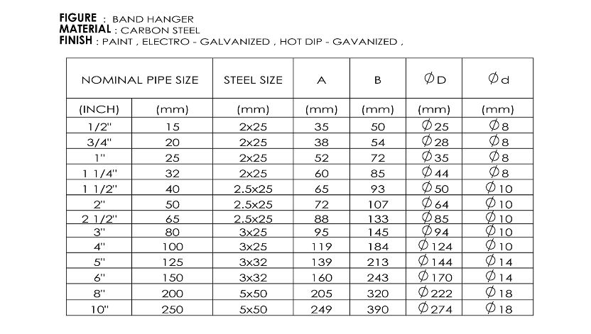 Type : Band HangerMaterial : Carbon SteelFinish : Paint, Electro - Galvanized, Hot DIP - Gavanized.